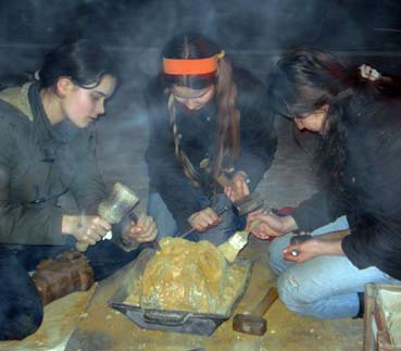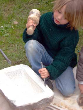 Löcher, Linien, Mulden entstehen - dann Buchstaben und
